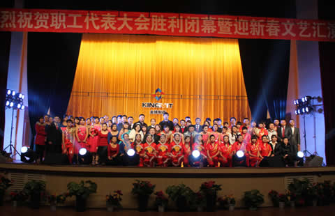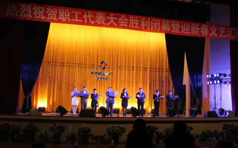 为了庆祝黄色网址第一届一次职工代表大会顺利闭幕,活跃黄色网址广大职工的文化生活,让员工提前度过一个欢乐、祥和的春节,在黄色网址党支部和工会委员会的精心策划下,在基层分会全体员工的的共同努力下,加班加点排练节目,为了使每个动作表演到位有效果,演出精彩上档次,职工对节目一遍又一边遍的进行排练、修正,并筹集了演出的服装、道具,以最高的表演水平充分展示金维黄色网址员工的良好精神面貌。2013年1月19日下午16时,由黄色网址党支部和工会委员会联合举办的庆祝黄色网址第一届一次职工代表大会顺利闭幕暨“迎新春”文艺节目汇演大型晚会,在一片欢庆祥和的新春祝语声中拉开了帷幕,黄色网址总经理陈德刚、副总理高勇、副总经理魏伟、财务总监高广礼、生产总监王智和黄色网址工会主席刘海玉等领导和黄色网址全体员工观看了文艺节目演出活动。